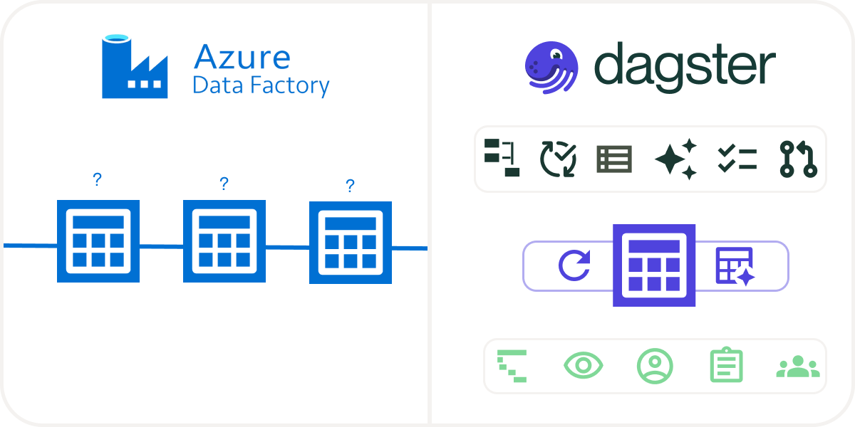 Azure Data Factory is a pipeline-first system. Datasets are secondary, and dataset lineage requires integrations with other Azure tools.